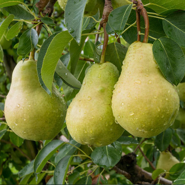 Внешний вид. Плоды грушевого дерева имеют вытянутую форму, расширяющуюся к нижней части. Кожура фрукта тонкая и нежная, в зависимости от сорта, может быть желтого, желто-зеленого, желто-красного цвета. Мякоть светло-кремового цвета, отличается легкой зернистостью, очень сочная и ароматная. Размер плодов зависит от сорта, вес одного фрукта варьируется от 100 до 200 граммов.