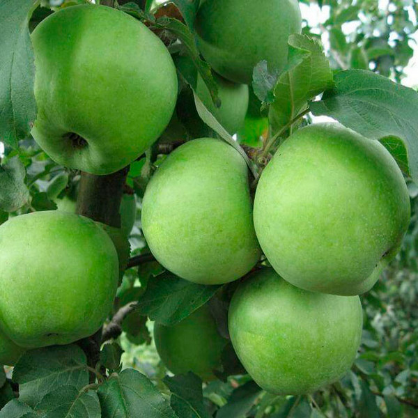 Плоды крупные- 190-220г, хорошо удерживаются на дереве, не осыпаясь. Кожица зеленая, с множеством белых точек. При позднем сьеме яблоки могут приобретать малиновый румянец на солнечной стороне. Мякоть зеленоватого цвета, сочная мелкозернистая, обладает гармоничным неповторимым кисло- сладким вкусом. Сьемная зрелость плодов наступает в конце сентября начале октября. Хранятся до июня. Урожайность 35-70 кг со взрослого дерева.Основные болезни – парша, мучнистая роса.Морозоустойчивость средняя.