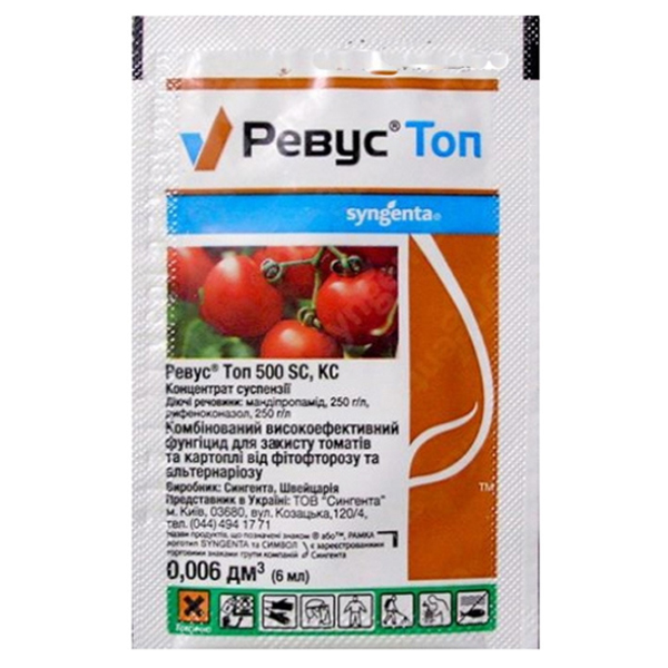 Ревус Топ - системно-трансламинарный фунгицид широкого спектра действия для защиты картофеля и томата от фитофтороза и альтернариоза.