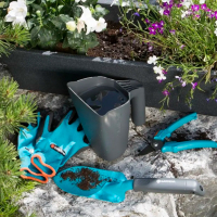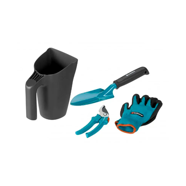 Комплект садовых инструментов с ковшом Gardena Classic Ergo включающий в себя крепкий многофункциональный кувшин, который имеет множество применений, например, для заливки почвы или в виде компактной поливной банки. В комплект также входят лопатка, секатор и садовые перчатки.
