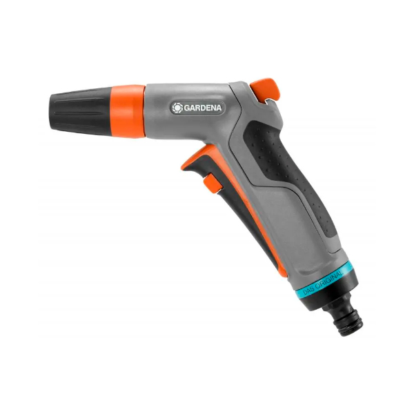 Gardena Comfort – пистолет для полива и орошения садовых растений, используется при подключении к садовому шлангу. Благодаря регулировке потока воды можно подстроить пистолет под любой вид полива. Для очистки садовых дорожек, сбивания пыли с кустов настраивается жесткая струя. Для мягкого полива цветочных клумб и других растений подойдет мелкая разреженная струя. С помощью специального фиксатора струю можно зафиксировать в одном положении для непрерывного импульсного орошения без усталости руки.