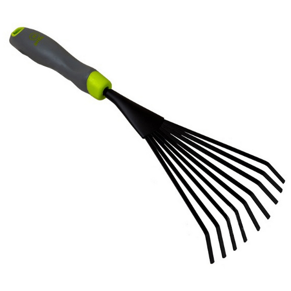 Ручные веерные грабли с девятью широкими зубцами из пружинной стали и эргономичной нескользящей ручкой. Позволяют быстро собрать листья и мелкий мусор с небольших участков. Идеально подходят для ухода за цветником. Устойчивы к коррозии и механическим повреждениям.