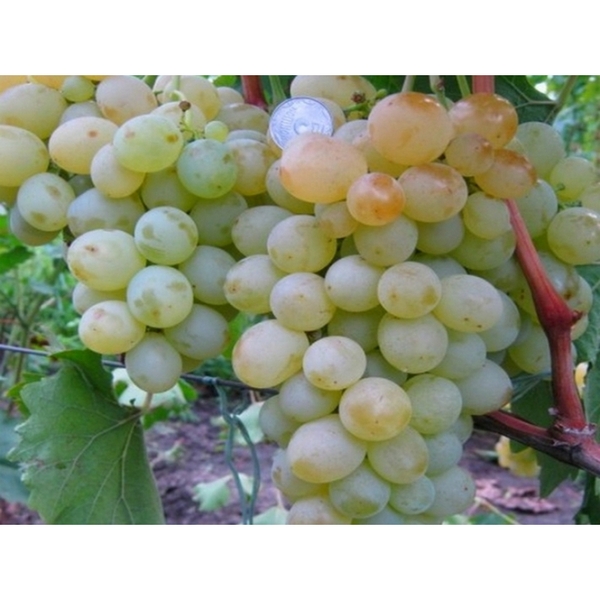 Цветок обоеполый. Грозди средние, массой до 200 гр, цилиндро-конические, средней плотности. Ягоды средние, массой 2 гр, круглые, зеленовато-желтые. Кожица легко съедаемая. Мякоть сочная, с сильным мускатным ароматом. Сахаристость 18-20%. Обрезка лоз на 6-8 глазков. Сорт характеризуется повышенной зимостойкостью и устойчивостью к болезням, не нуждается в укрывании на зиму.