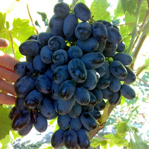 Средне-позднего срока созревания 135-140 дней. Цветок обоеполый, грозди средние, ветвистой структуры, средне – рыхлые. Ягоды очень крупные до 50 мм в длину. Устойчивость к милдью, оидиуму слабая, 3,5 – 4 балла. Нужно часто (1-2 раза в месяц) обрабатывать фунгицидами. Мякоть плотная, гармоничного вкуса, кожица при еде не ощущается. Хорошо набирает сахар как для осеннего сорта.