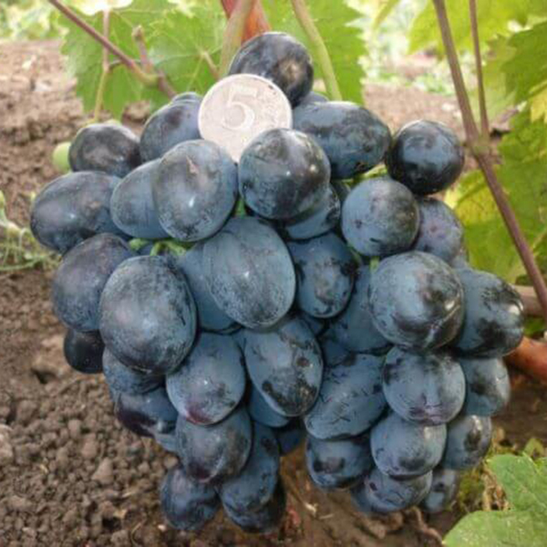 Виноград Руслан - высокопродуктивный гибрид украинской селекции (В.Загорулько), примечательный очень ранним сроком созревания (100-115 дней) и отличными товарными и вкусовыми качествами ягод, а также высокой стойкостью к болезням. Плоды созревают в середине августа. Ягоды красивые, очень крупные, массой 18-20 г, овальной формы, темно-синего, почти чёрного цвета, с восковым налетом. Мякоть плотная, сочная, хрустящая, гармоничного вкуса со сливовым привкусом. Кожа тонкая, съедаемая. Грозди крупные, средней массой 500-800 г, средней плотности. Лежкость и транспортабельность очень хорошая.
