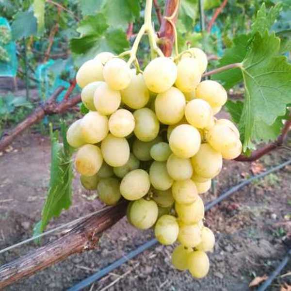Ягоды овальной формы, весом от 12 до 18 г, и в редких случаях до 22 г. Их белый цвет и гармоничный, чистый вкус без лишних ароматов делают этот сорт особенно привлекательным для гурманов. Мякоть ягод плотная и мясистая, а кожура средней толщины — при укусе она хрустит. В ягодах можно встретить 2-3 маленьких рудимента, которые почти не ощущаются при еде.