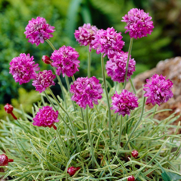 Невысокое подушковидное растение. Листья узкие, вечно-зеленые. Соцветия шаровидной формы, состоящие из мелких темно-розовых цветков на тонких цветоносах. Цветет в июне. Высота соцветий до 20 см. После отцветания высота растения не превышает 10 см.
