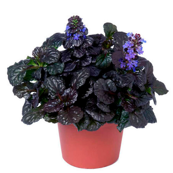 Живучка или Аюга - неприхотливое почвопокровное полувечнозелёное растение со стелющимися, легко укореняющимися побегами, образующими очень плотные ковры высотой 10-20 см. Шоколадный оттенок листьев создает прекрасный фон для голубых цветов. Во время цветения выпускает цветоносы высотой до 30 см.