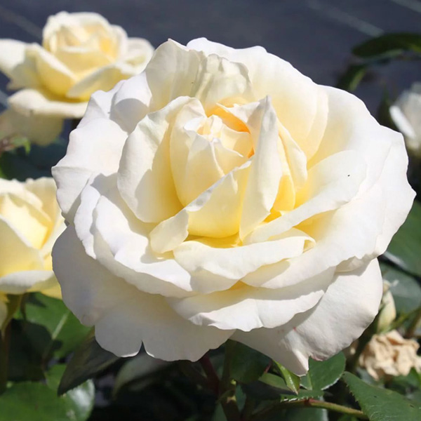 Роза чайно-гибридная Ла Перла ( La Perla) - замечательный срезочный сорт немецкой селекции (Kordes, 2006 г.) с крупными (10-11 см) кремово-белыми с перламутровым отливом цветами. Аромат легкий, приятный. Прекрасна в букете, долго стоит в вазе.