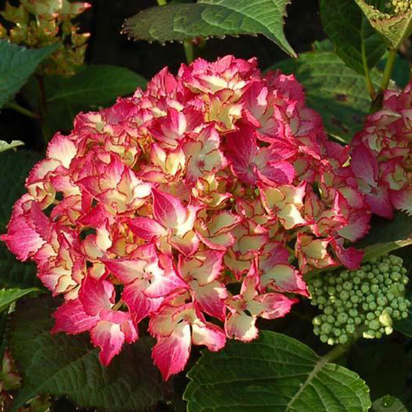 Низкорослый кустарник высотой до 120 см, диаметром - 120 см. Шикарные шапки двухцветных цветков с более ярким красным краешком лепестков.