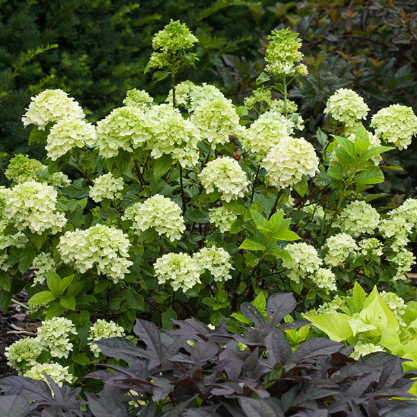Компактный куст, обильно и продолжительно цветущий. Высота куста до 1 м. Листья матово-зелёные, крупные, зубчатые. Соцветия полушаровидные, плотные. Цветки белые, по мере отцветания розовые, затем зеленоватые. Зимостойкость высокая.