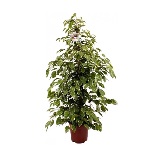 Фикус Бенджамина Голден Кинг, Ficus benjamina Golden King или плакучая смоковница - невысокое, цветущее, вечнозеленое дерево из семейства Тутовые. Это самый популярный и часто используемый вид из рода фикусовых. Простота и дешевизна в выращивании, красивый эстетический вид, сделали это дерево самым желанным обитателем оранжерей и простых городских квартир.