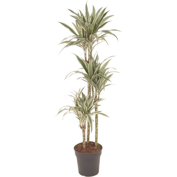 Драцена Улисс – изящная двухцветная драцена, листья темно-зеленые со светло-серыми полосами. Вырастает в комнатных условиях до 2 м в высоту. Драцены превосходно вписываются в архитектуру современного интерьера, сочетая изящество тонкого ствола с экзотичностью красочно расписанных листьев. Считается, что драцена успокаивает и снимает подавленное состояние.