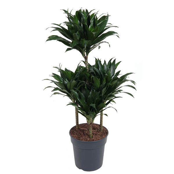 Драцена Компакта Карусель - декоративная композиция растений, расположенных по спирали вокруг основного, самого высокого ствола. Благодаря тому, что кроны уже сформированы производителем, эта группа драцен смотрится очень эффектно и эстетично.