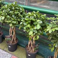 Фикус мокламе имеет темно-зеленые, широкоовальные, блестящие листья