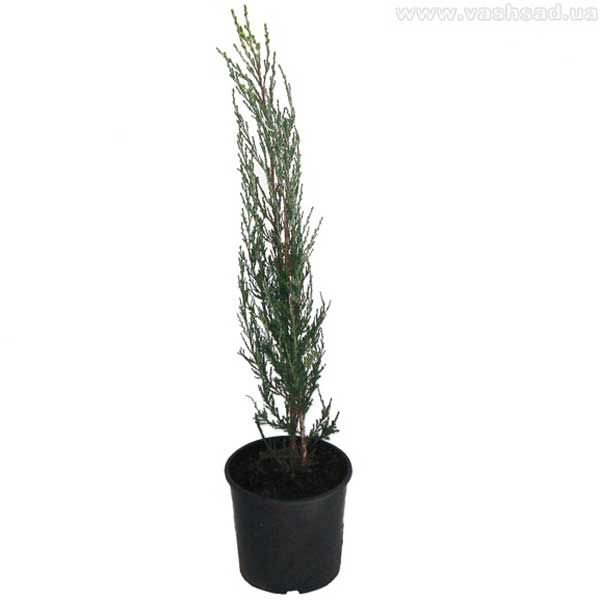 Узкая колонновидная форма. Побеги жесткие, расположены вертикально, плотно примыкают к штамбу. Хвоя чешуевидная насыщенно-голубого цвета, не колючая. Растет медленно. Предпочитает солнечные места. Довольно неприхотлив и морозостоек. Плохо переносит уплотнение почвы. Такая эффектная вертикаль хорошо смотрится как в одиночных, так и в групповых посадках.