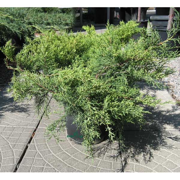 Juniperus media "Pfitzeriana Aurea" - хвойный вечнозеленый кустарник с широкой, раскидистой кроной. Растет быстро. В десятилетнем возрасте достигает высоты 1 м и диаметра 2-3 м. В более старшем возрасте может достигнуть высоты 2-3 м, а форма кроны стать приподнятой с элегантно опущенными концами ветвей. Молодые побеги ярко-желтые (особенно яркие на суглинках). Летом побеги зеленеют и к зиме кустарник становится желто-зеленым. Хвоя на периферийных побегах чешуйчатая, ближе к основанию – игольчатая.Излюбленное растение садоводов и ландшафтных дизайнеров для высадки в качестве нижнего яруса в крупных ландшафтных парках и композициях.Высота растения: 60-80 см.