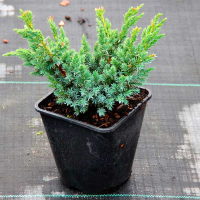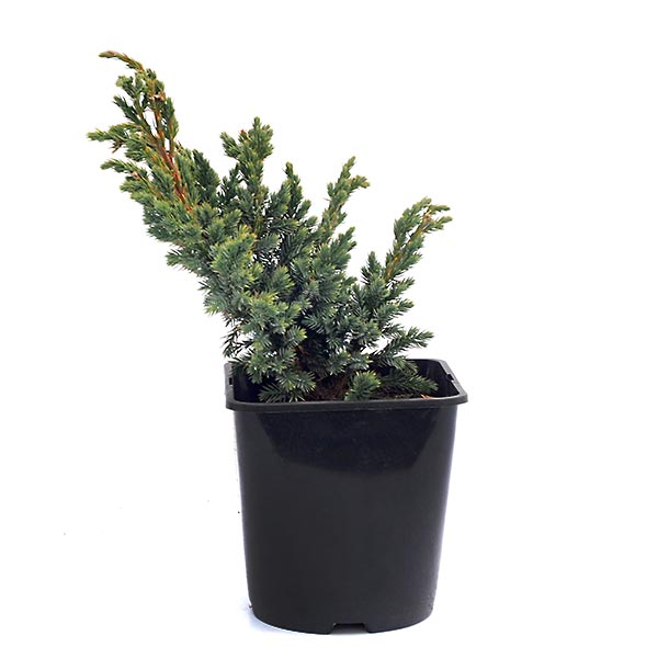 Вечнозеленый крупный кустарник с неправильной воронковидной кроной, приподнятыми сильными основными ветвями и многочисленными боковыми побегами со свисающими верхушками. С возрастом становится очень рыхлым. Растёт медленно, достигает 3-5 м высоты и 2-3 м шириной. Хвоя игольчатая, 6-10 мм длиной, очень густо расположена, выражено серебристо-голубая. Кустарник светолюбив, но выносит и затенение. Нетребовательный к почвам, растет на всех умеренно сухих или свежих субстратах, от кислых до щелочных. Морозостойкий, выносит городской климат и жару. Желательно немного подстригать для получения регулярной плотной формы. Рекомендуется посадка отдельно, либо в группах.