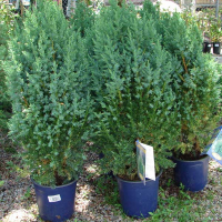 - кустарник с конусообразной кроной и густыми, вертикально растущими ветвями. Растет медленно. Высота взрослого растения 3,5 м, ширина – 1,5 м.