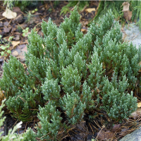 Можжевельник горизонтальный Блю Форест (Juniperus horizontalis Blue Forest) - это стелющийся низкорослый кустарник с приподнятыми вверх побегами и густой кроной. Это медленнорастущий сорт, к 10-и годам его высота не превышает 30 см, при диаметре кроны 1-1,5 м