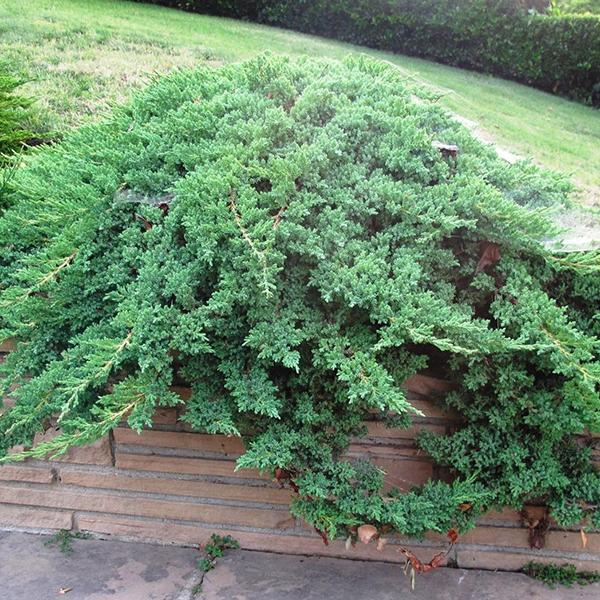 Можжевельник Нана (Nana) - лежачий хвойный кустарник с жесткой, стелющейся кроной. Его ветви имеют четкую горизонтальную направленность, очень плотно прилегают друг к другу.