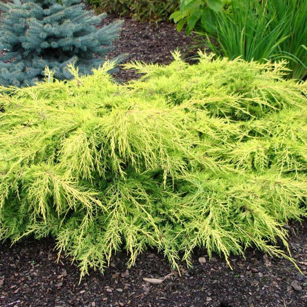 Можжевельник Пфитцериана Gold Star - средний хвойный кустарник с широкой, раскидистой кроной. Ветви растут параллельно земле, располагаясь ярусами друг над другом. Растение стелется по земле сплошным полотном, за счет чего отлично смотрится на участках большой площади.