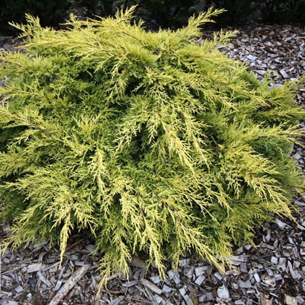 Хвоя золотисто-желтого оттенка, кончики молодых побегов золотистые.