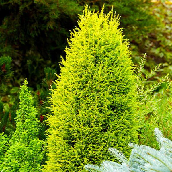 Можжевельник Suecica Aurea — прекрасное решение для сада, парка и ландшафтной композиции. Крона компактная, вертикальная, правильной формы, пушистая — красивейший вариант для дачного участка и зоны отдыха. Хвойное растение не только очищает, но и освежает воздух. Вблизи деревца сохраняется приятная прохлада. Годовой прирост 15 см за сезон, со временем он замедляется. Сколько живет можжевельник обыкновенный — до 100-300 лет. Преимущество в окрасе хвои: основной цвет зеленый, а кончики золотистые. В миксбордере отличным партнером станет пестролистая хоста, яркая гейхера, красный барбарис и почвопокровный можжевельник.