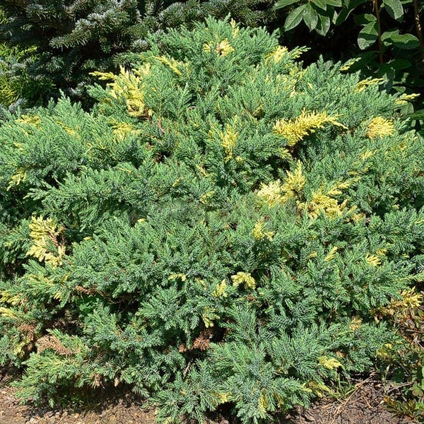Можжевельник китайский Экспанса Вариегата (Juniperus chinensis Expansa Variegata) - прелестный пестрый сорт можжевельника с многочисленными вкраплениями нежно-кремового цвета. Отличный цветной акцент для садовых композиций.