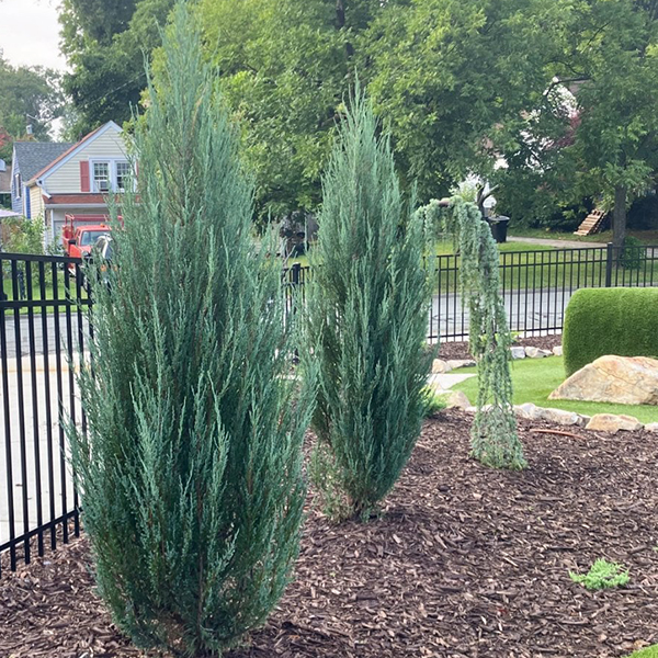 Можжевельник Блю Эрроу (Блю Арроу, Blue Arrow) - голубой скальный хвойный кустарник. Его высота позволяет использовать растение в качестве эффектной живой изгороди и оригинальных зелёных скульптур. Возможно насаждение большого количества саженцев в близком расстоянии.