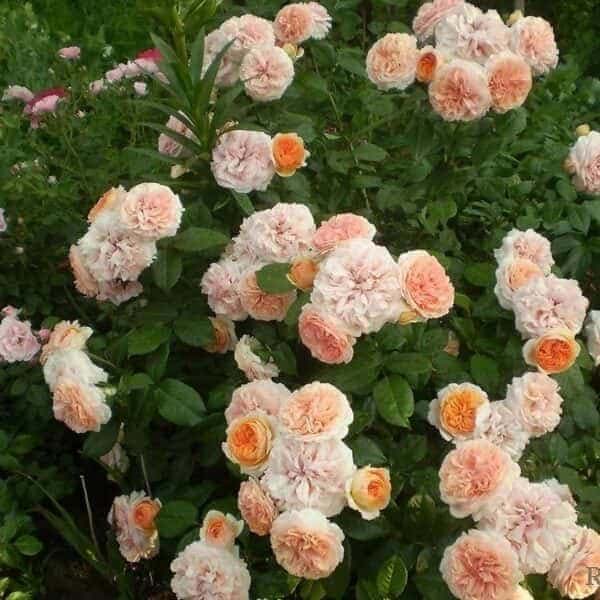 Окраска жемчужно-розовая с легким абрикосовым оттенком в центре. Цветет почти без перерыва все лето и осень на длинных изящных побегах.