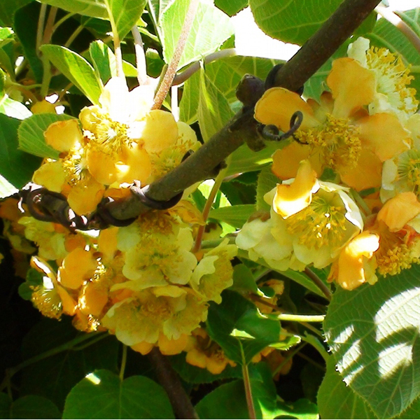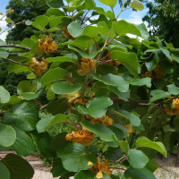 Актинидия китайская - крупная древовидная лиана семейства актинидиевых, высотой до 8 м. Ценится за свои съедобные ягоды. Под их обычно опушенной бурой кожицей находится изумрудно-зеленая мякоть со множеством мелких черных семян. Аромат своеобразный, несколько напоминающий земляничный, вкус сладкий. Имеет красноватые или темно-коричневые побеги, овальные листья (зеленые, красно-бронзовые). Цветки однополые или двуполые, белые с запахом эфирных масел.