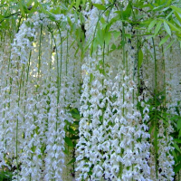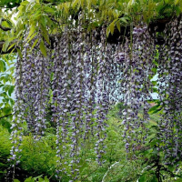 Глициния обильноцветущая , Wisteria floribunda - долголетний, высоко вьющийся, пышно цветущий, листопадный вид лианы семейства Бобовые. Ни одно другое лиановое вьющееся растение не может похвастаться столь обильным и пышным цветением. Гроздья маленьких соцветий создают невероятную картину. Это зрелище стоит того, чтобы купить саженцы или семена Глицинии.