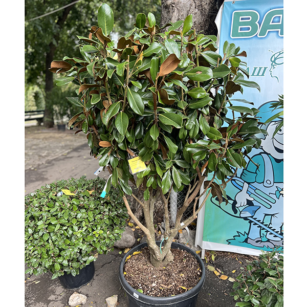 На родине, в юго-восточных штатах США, она растёт в смешанных лесах с дубами, вязами и другими видами магнолий. В культуре достигает высоты 30 метров, при этом у основания ствол бывает до 1,5 м в диаметре. Крупные, блестящие, кожистые листья собраны на концах ветвей в виде "зонтика". Но особенно красивы деревья в период цветения - с июня по сентябрь. Листья до 20 см длиной, широкоэллиптические, толстые, кожистые. С верхней стороны лист темно-зеленый, блестящий, с нижней - опушен ржаво-желтыми волосками. Цветки очень крупные, до 30 см в диаметре, душистые, расположены по одному. Они очень красивы и одновременно имеют примитивное строение. Околоцветник из 6-9 нежно-белых долей, тычинок и пестиков много. Плоды - сборные листовки, по внешнему виду напоминающие шишку. В листьях магнолии найдено до 0,5 % эфирного масла с приятным запахом, гликозиды. Кора содержит алкалоиды, цветки - эфирное масло. Месторасположие и почва: Магнолия крупноцветковая хорошо растет на легких плодородных почвах. Не любит известковых почв. Предпочитает полутенистые места, защищенные от ветров. Использование:С успехом применяется для создания групп, аллей и для одиночных посадок. Эфирное масло, получаемое из листьев и цветков магнолии, используется в парфюмерной промышленности. На родине промышленное значение имеет ценная древесина.