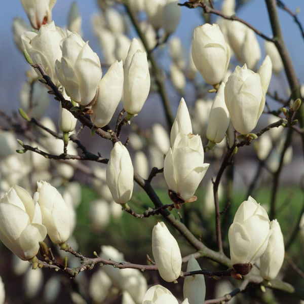 Магнолия суланжа Альба Суперба - изысканный листопадный кустарник с густой и компактной формой кроны. Сказочное цветение ароматных белоснежных цветов в форме тюльпана огромного размера, раскрывающиеся на оголённых веточках ещё до появления листьев и издающие приятный аромат - главное достоинство Магнолии сорта Альба Суперба.