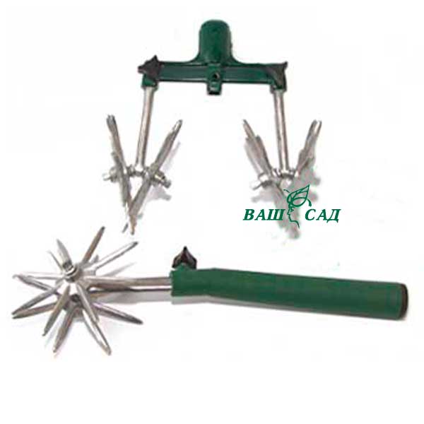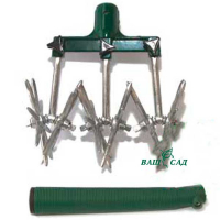Культиватор предназначен для рыхления земли, снимает "корочку" с почвы после полива или дождя. Этот процесс благоприятствует поступлению кислорода в почву. Металлические трезубцы съёмные.