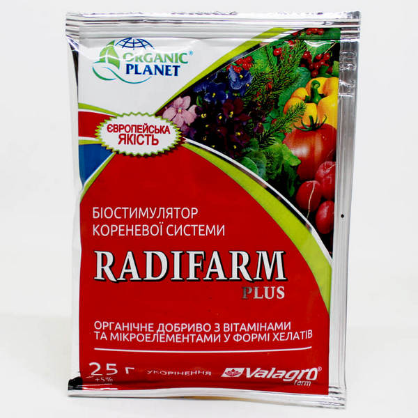 Радифарм плюс – комплекс вытяжек растительного происхождения, содержащий: полисахариды, стероиды, гликозиды, аминокислоты, бетаин, микроэлементы и витамины. Позволяет уменьшить стресс, вызванный пересадкой (высадкой) растений и способствует быстрому укоренению рассады кустарников, деревьев, хвойников, цветов. Обеспечивает более ранний старт вегетативного цикла, способствует равномерному развитию растения, стимулирует рост корневой системы.