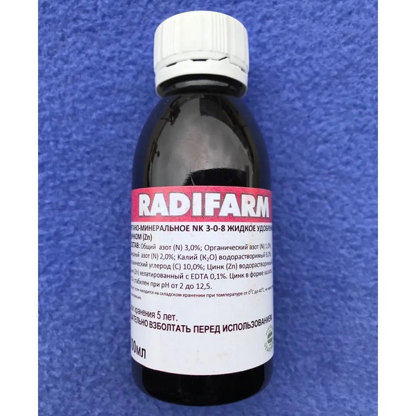 Биостимулятор Радифарм (Radifarm) - органическое удобрение с витаминами и микроэлементами в форме хелатов. Специально разработанный активатор для развития корневой системы. Стимулирует развитие боковых и вспомогательных корней. Обеспечивает более ранний старт вегетативного цикла, стимулирует выработку гормонов, отвечающие за рост корня. Уменьшает стресс, вызванный пересадкой растения. Способствует быстрому укоренению рассады, а также саженцев, кустов, деревьев. Защищает от заморозков.