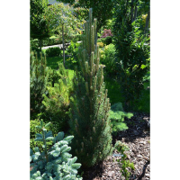 Прямостоячий сорт c конической формой кроны. Растёт медленно, к 10 годам высота 120 см, ширина 45 см. Хвоя тёмно-зеленая, колючая. Светолюбива. Очень вынослива.