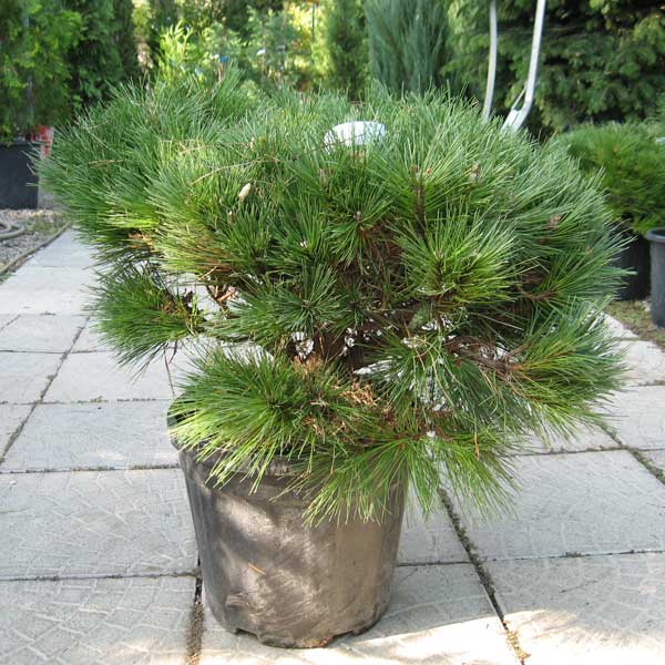 Карликовый сорт сосны с правильной плотной шаровидной кроной. Растёт медленно. После 10 лет достигает 0,5 м высоты. Этот сорт часто прививают на штамбе. Хвоя темно-зеленая, блестящая или матовая, в пучке по две, заостренная, твердая, прямая или несколько согнутая, нередко скрученная. Длина хвои около 8-14 см. Шишки размером 8х3 см на коротких черешках, расположены на ветвях горизонтально. Шишки желто-коричневые, блестящие, раскрываются на третий год.