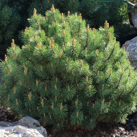 Карликовый сорт сосны с правильной плотной шаровидной кроной. Растёт медленно. После 10 лет достигает 0,5 м высоты. Этот сорт часто прививают на штамбе. Хвоя темно-зеленая, блестящая или матовая, в пучке по две, заостренная, твердая, прямая или несколько согнутая, нередко скрученная. Длина хвои около 8-14 см. Шишки размером 8х3 см на коротких черешках, расположены на ветвях горизонтально. Шишки желто-коричневые, блестящие, раскрываются на третий год.