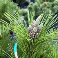 Хвоя: Темно-зеленая, жесткая, собрана по 2 в пучки, длиной 7-12 см, очень плотная.