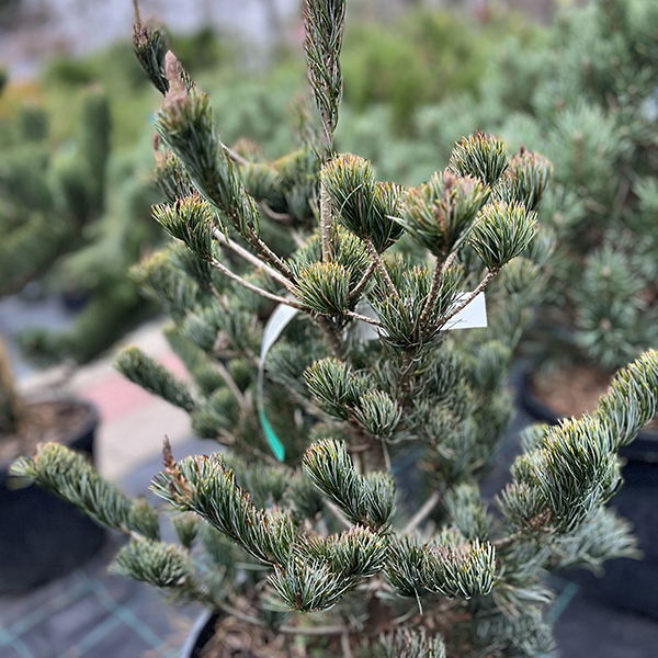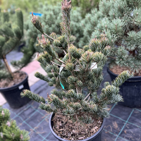 Сосна мелкоцветковая 'Aoi Nishiki' (Аои Нишики) - это медленнорастущая японская белая сосна, ценящаяся за свою декоративность: вертикальный габитус, серебристо-серую кору и пушистую голубовато-зеленую хвою, собранную в пучки по пять иголок, с характерными мелкими шишками, идеальна для японских садов и бонсай, требует солнца и хорошего дренажа, устойчива к морозам до -30°C.