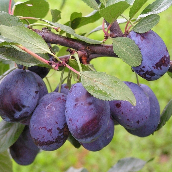 Размер плодов: Плоды крупные, имеют удлиненно-овальную форму. Самые крупные могут весить почти 60 г. Сливы среднего размера 30 г. Полностью зрелые сливы почти черные, имеют небольшой восковой налет голубоватого оттенка. Плод имеет шов четко выраженный.