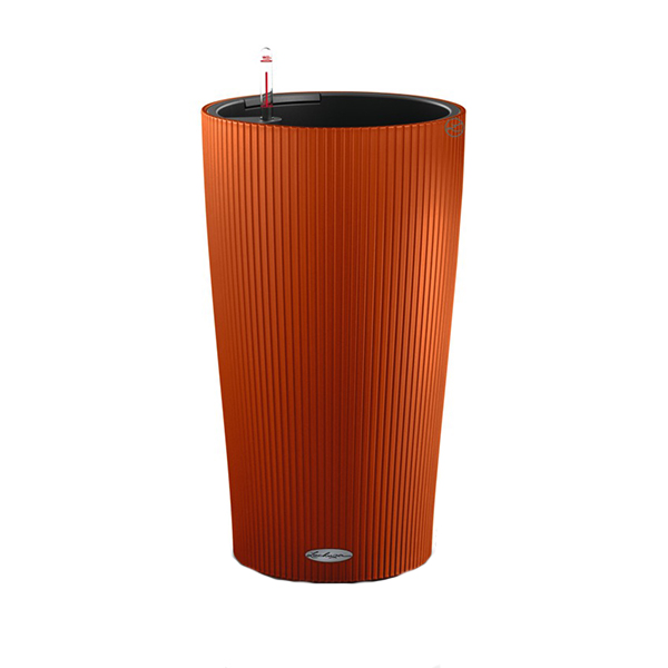 Вазон Lechuza Cilindro color состоит из внешнего кашпо из качественного прочного немецкого пластика, съемного посадочного горшка с выдвижными ручками, субстрата Lechuza-PON и индикатора уровня воды. По форме горшки для цветов Lechuza Cilindro Color 32 Терракотовый напоминает цилиндр зауженный внизу с рельефом в виде вертикальных полос. Вазоны Cilindro Color удароустойчивые, переносят прямые солнечные лучи не теряя цвета, и могут использоваться на улице благодаря защите от вымокания дождевой водой.