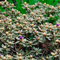Медленно растущий компактный кустарник. Высота 10-40 см, ширина 50-80 см. Годовой прирост 3-5 см. Продолжительность жизни 20 лет. Цветет в мае, 2-3 недели. Цветки воронковидной формы, фиолетово-синие, собраны в плотные соцветия. Предпочитает полутень, но переносит и прямые солнечные лучи. Почвы кислые (рН от 4,5 до 5), торфяные, свежие, рыхлые, хорошо дренированные. Чувствителен к засухе, но не переносит переувлажнения. Обязательное рыхление. Морозоустойчив, но рекомендуется укрытие на зиму, для защиты от снега. Избегать весенних солнечных ожогов и ветров. Формирующая обрезка придает кроне густоту. При посадке не терпит заглубления корневой шейки. Рекомендуется для солитерных и групповых посадок в китайских садиках, альпинариях и рокариях.