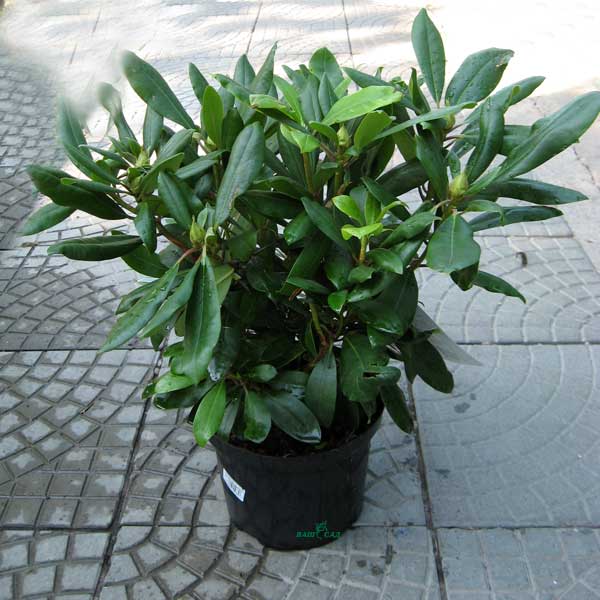 Компактный, прямостоячий, вечнозеленый кустарник с продолговатыми темно-зелеными листьями. Цветки простые, фиолетовые с коричнево-желтым пятном в центре.
