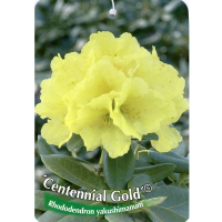 Rhododendron yakushimanum Centennial Gold медленнорастущий компактный, шаровидный кустарник, высотой 0,5 -1м, диаметр кроны до 1,5 м. Листья удлиненные, длиной 5-10 см, шириной 3-4 см, кожистые, сверху темно-зеленые, снизу с плотным темно-коричневым войлочным опушением. Цветение обильное и продолжительное: с мая по начала июня. Светолюбив. Почвы предпочитает свежие, торфянистые, богатые гумусом, слабокислые или кислые. Зимостоек, выдерживает зимние морозы до -22-26 градусов, но в молодом возрасте растения лучше укрывать. Рекомендуется для альпинариев, групповых посадок в каменистых садах.