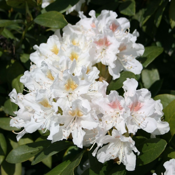 Рододендрон Cunningham`s White - вечнозелёный обильно цветущий кустарник, уникален в летний период темно-зелёной листвой, обеспечивающей фон для других растений, а в период цветения является чарующей белоснежной доминантой. Также преимуществом рододендрона сорта Белый Каннингемс является малотребовательность к кислотности почвы, устойчивость к морозу, засухам, городскому загрязнению воздуха.