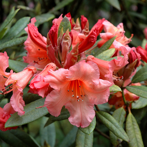 Рододендрон гибридный Тортуазшелл Оранж (Tortoiseshell Orange) - это компактный крупный куст, с рыхлой формой из довольно крупных, колокольчатых, открывающихся в начале лета цветов. Они сочетают в себе мягкие золотисто-желтые и бледно-розовые оттенки, что создает красивый пастельно-оранжевый цвет.